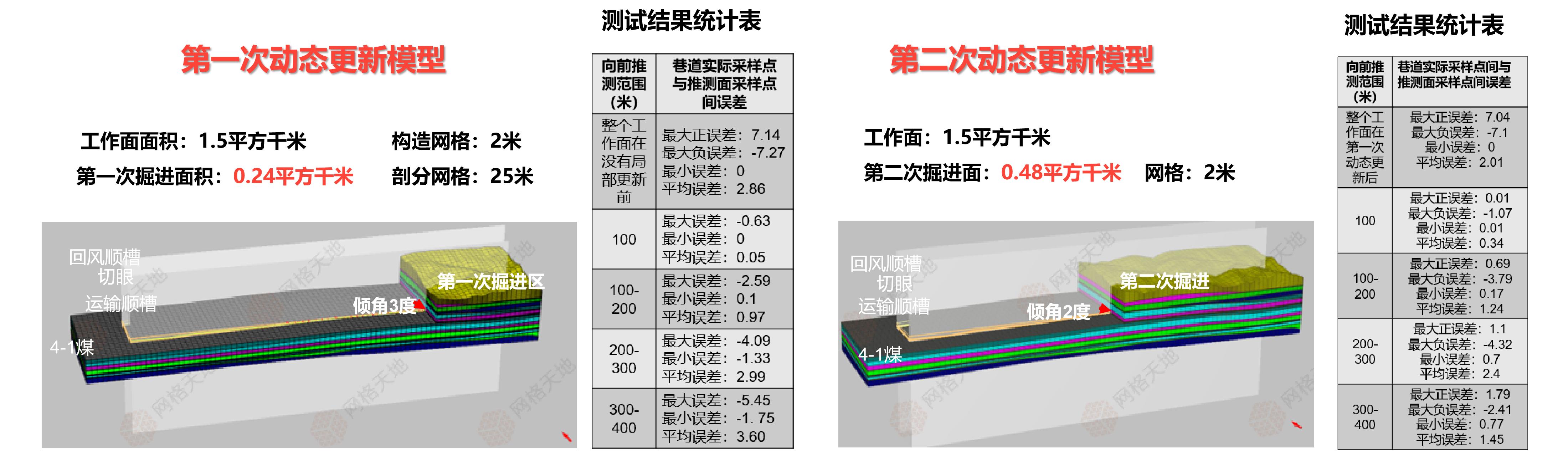 The system supports error calculation for sampling points based on different advancement ranges, such as every 100 or 200 meters. It automatically compares the deviation between predicted data and actual sampled data, continuously optimizing the accuracy of the geological model. This means: