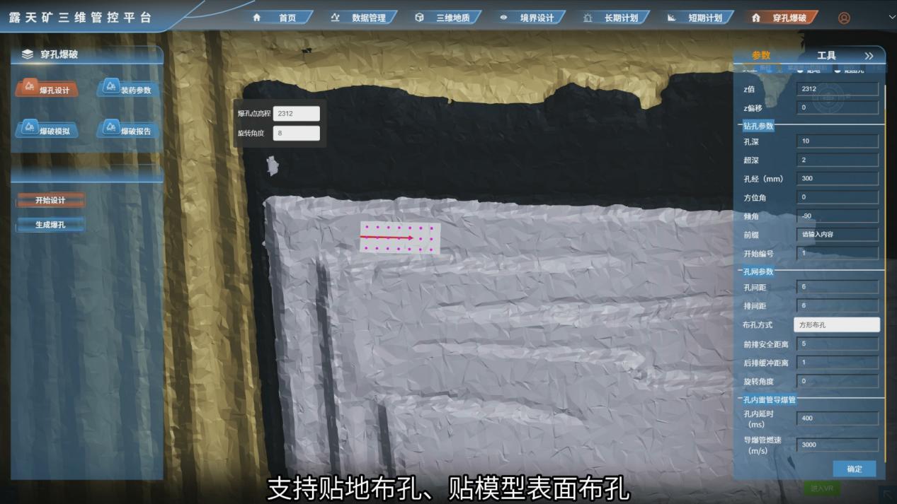 Building on a unified 3D geological model, the platform offers intelligent mining design and production planning optimization capabilities, supporting online process planning and dynamic parameter adjustment. Additionally, it can be extended to build an integrated digital twin system that combines geology, engineering, and real-time equipment status, enabling panoramic mapping, simulation, and collaborative control of mine production operations.